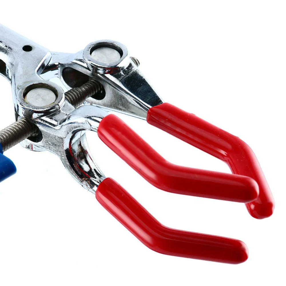 | Description | 1.Die-cast alloy. Chrome . With three coated jaws. Accepts articles up to 70mm 2.With Rubber/PVC-Coated Jaws, and with one or two prong adjustment. 3.This clamp is extensively used in laboratories to hold test tubes, crucibles, burettes, etc. |