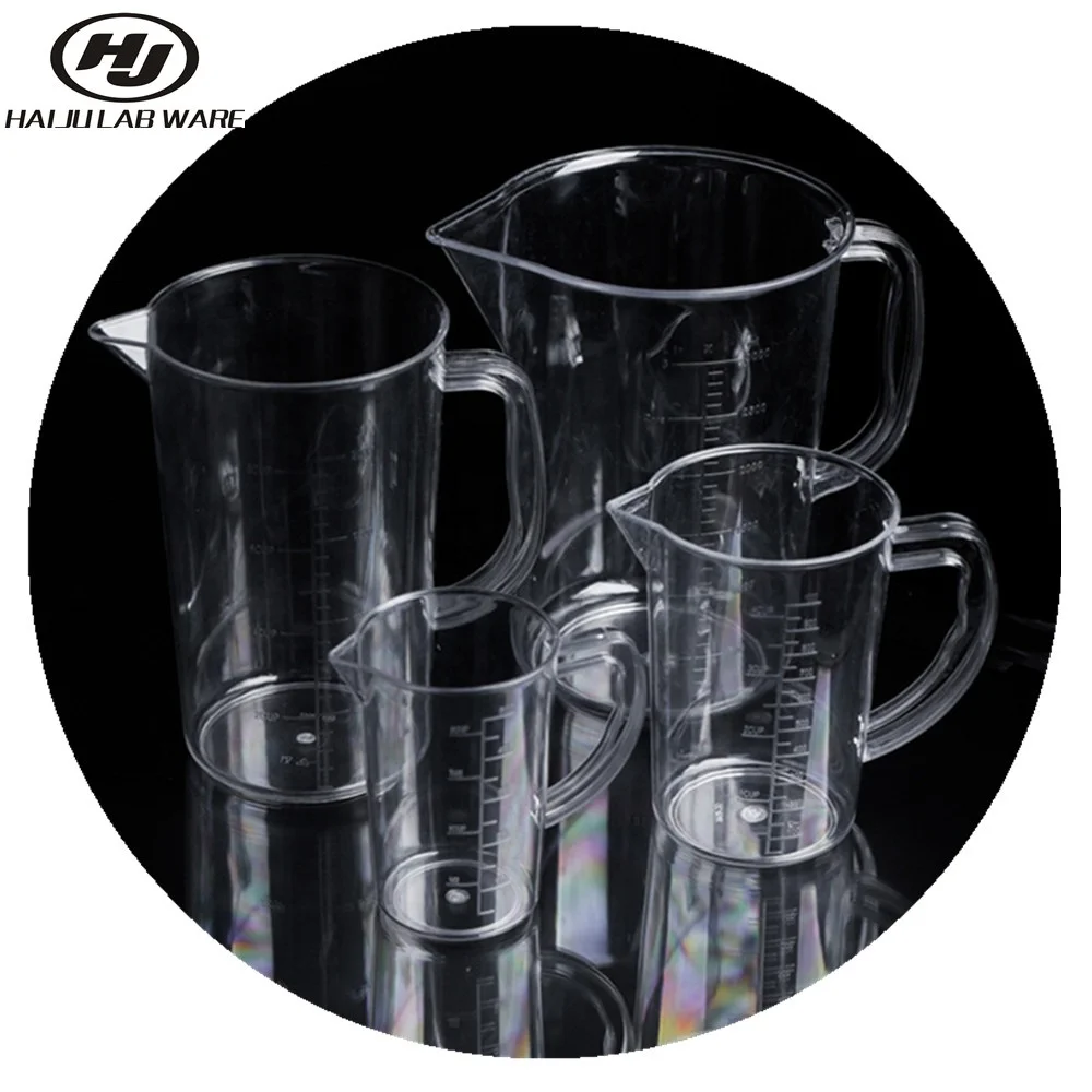HAIJU LAB 1L Plastic PP Material Sterilization Useful Liquid Consumable Disposable Mixing Cup With Handle and Measurement