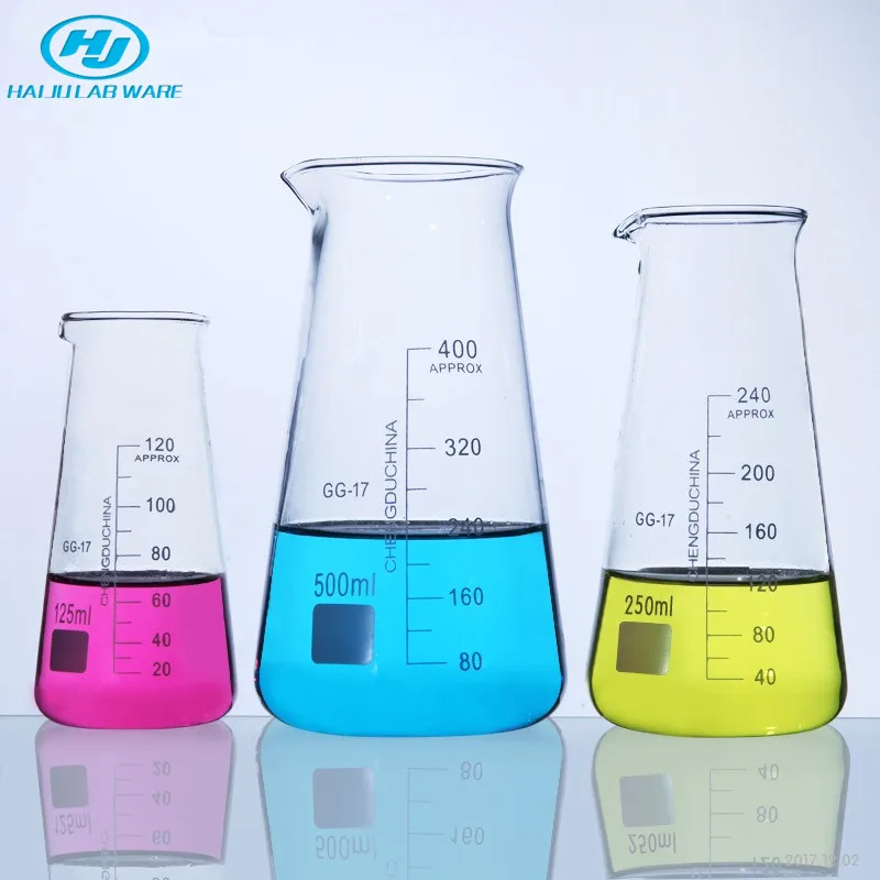 HAIJU LAB 125ml 250ml 500ml Laboratory Equipment Heat Resistant Borosilicate 3.3 Glass Conical Beaker