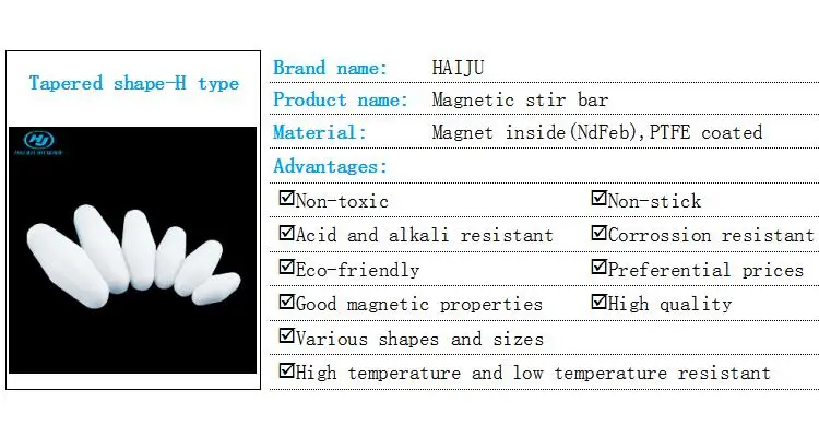 HAIJU LAB Magnetic Stir Bars Tapered Shape H Type PTFE Magnetic Stirrer Mixer Stir Bars Stirring Rod for Laboratory